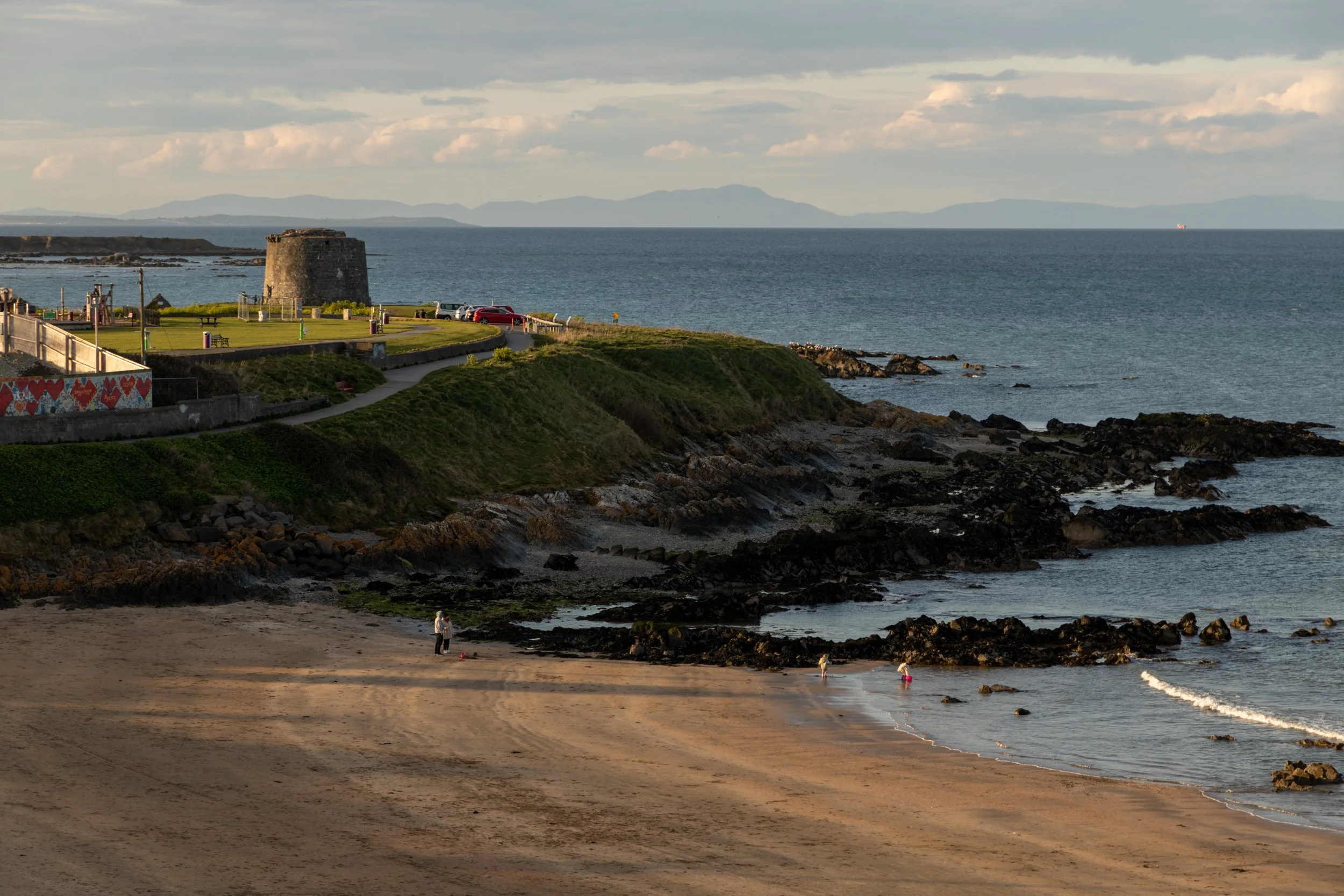 Bremore Castle. The wonderful Morne mountains are seen behind on a clearer day.