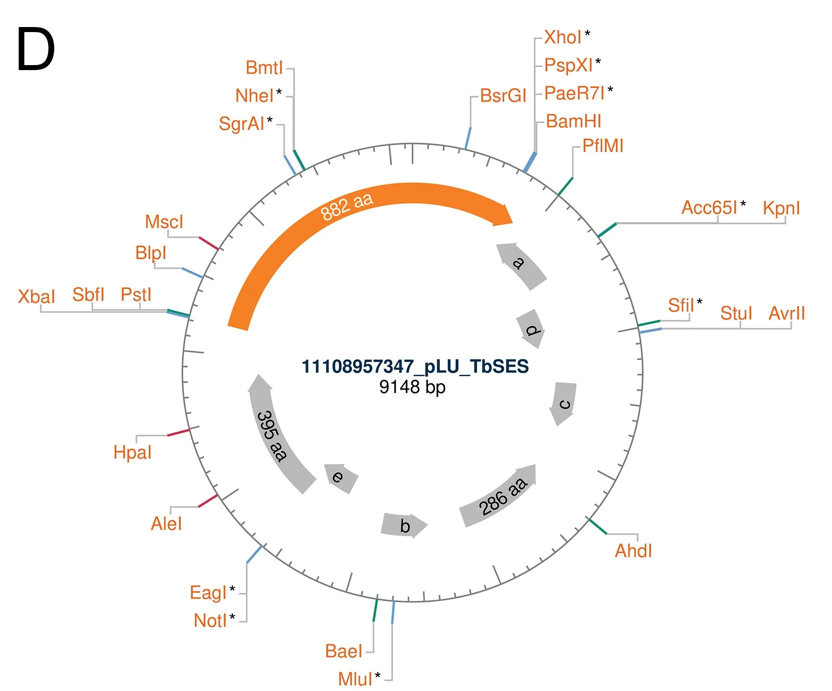 Subsequently, we successfully performed another round of cloning and added a FLAG tag to the N-terminus of TbSESN. The FLAG tag allowed us to perform a couple of checks, such as checking if the construct expresses in 293T cells, and other things. We now possess a plasmid that is ready for the induction of TbSESN in the Trypanosoma brucei (Figures G-I).