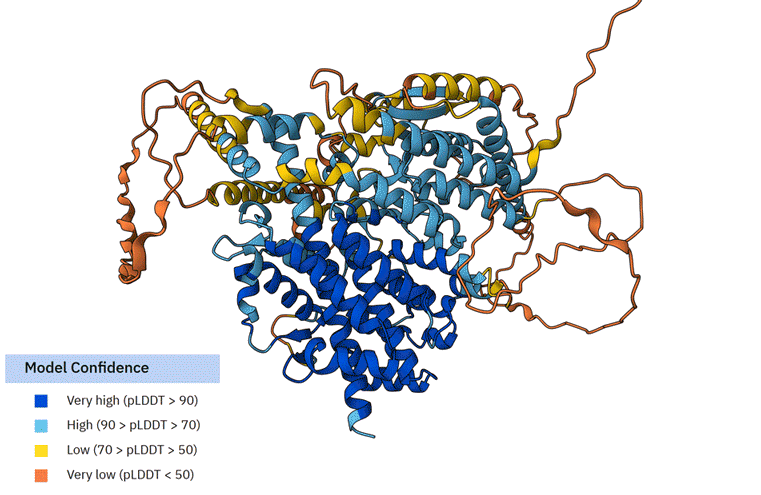 The average AlphaFold model score of TbSESN suggests that it is a poorly constructed model (Average pLDDT 64.03 (Low)). The portion of TbSESN that is resolved most accurately (Very high (pLDDT > 90)) is the part of the structure that resembles human SESN2, likely reflecting the AlphaFold model bias towards available resolved structures.